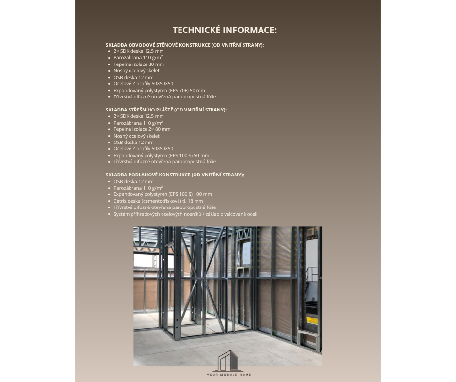 Cena od představuje precizně zpracovaný základ vašeho modulového domu. Zahrnuje kompletní a funkční stavbu s mnoha dokončenými prvky. Veškeré individuální úpravy a prémiové doplňky s vámi detailně probereme v rámci klientských specifikací a transparentně naceníme.